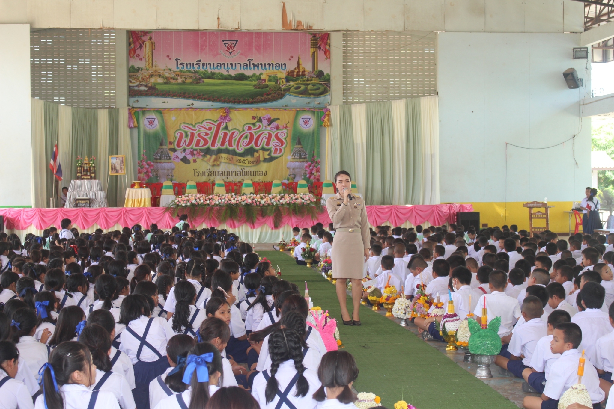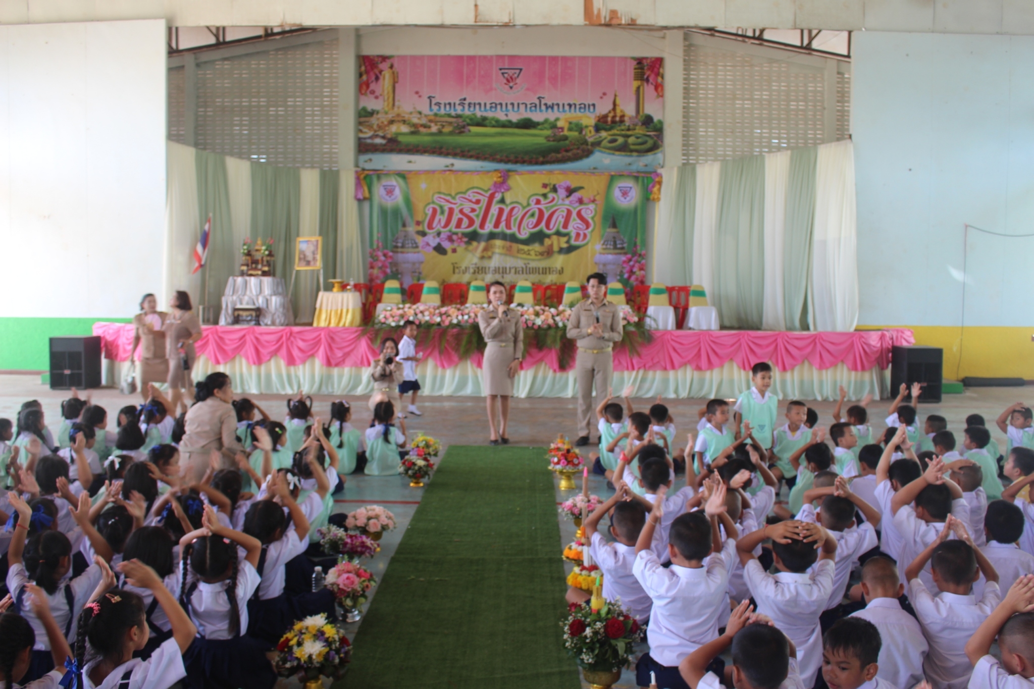 วันพฤหัสบดีที่ 13 มิถุนายน พ.ศ.2567 โรงเรียนอนุบาลโพนทอง จัดกิจกรรมไหว้ครู ประจำปีการศึกษา 2567 เพื่อสืบสานประเพณีอันดีงาม เพื่อเป็นการแสดงความเคารพนับถือและระลึกถึงพระคุณของครูผู้ประสิทธิ์ประสาทความรู้ให้แก่ศิษย์ โดยมี นายกิตติพัศ นพนิยม ผู้อำนวยการโรงเรียนอนุบาลโพนทอง เป็นประธานในพิธี ในการนี้ นางสาวชนิดาภา คำจูมจัง และ นางสาววิจิตรา จันทะแดง รองผู้อำนวยการโรงเรียน พร้อมด้วยข้าราชการครูและบุคลากรทางการศึกษาโรงเรียนอนุบาลโพนทอง ร่วมพิธีในครั้งนี้ด้วย ณ หอประชุมโรงเรียนอนุบาลโพนทอง อำเภอโพนทอง จังหวัดร้อยเอ็ด